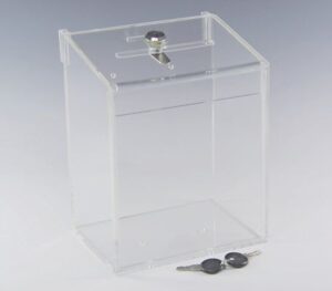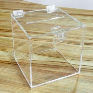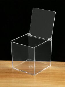 Hộp mica quảng cáo/ hộp bốc thăm: sử dụng kính mica để làm thùng phiếu, hộp từ thiện, hộp bỏ thăm trúng thưởng tại sự kiện.