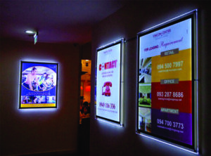 Tranh điện khung nhôm siêu mỏng treo di động: dễ tháo lắp, phù hợp mang đi nhiều sự kiện.